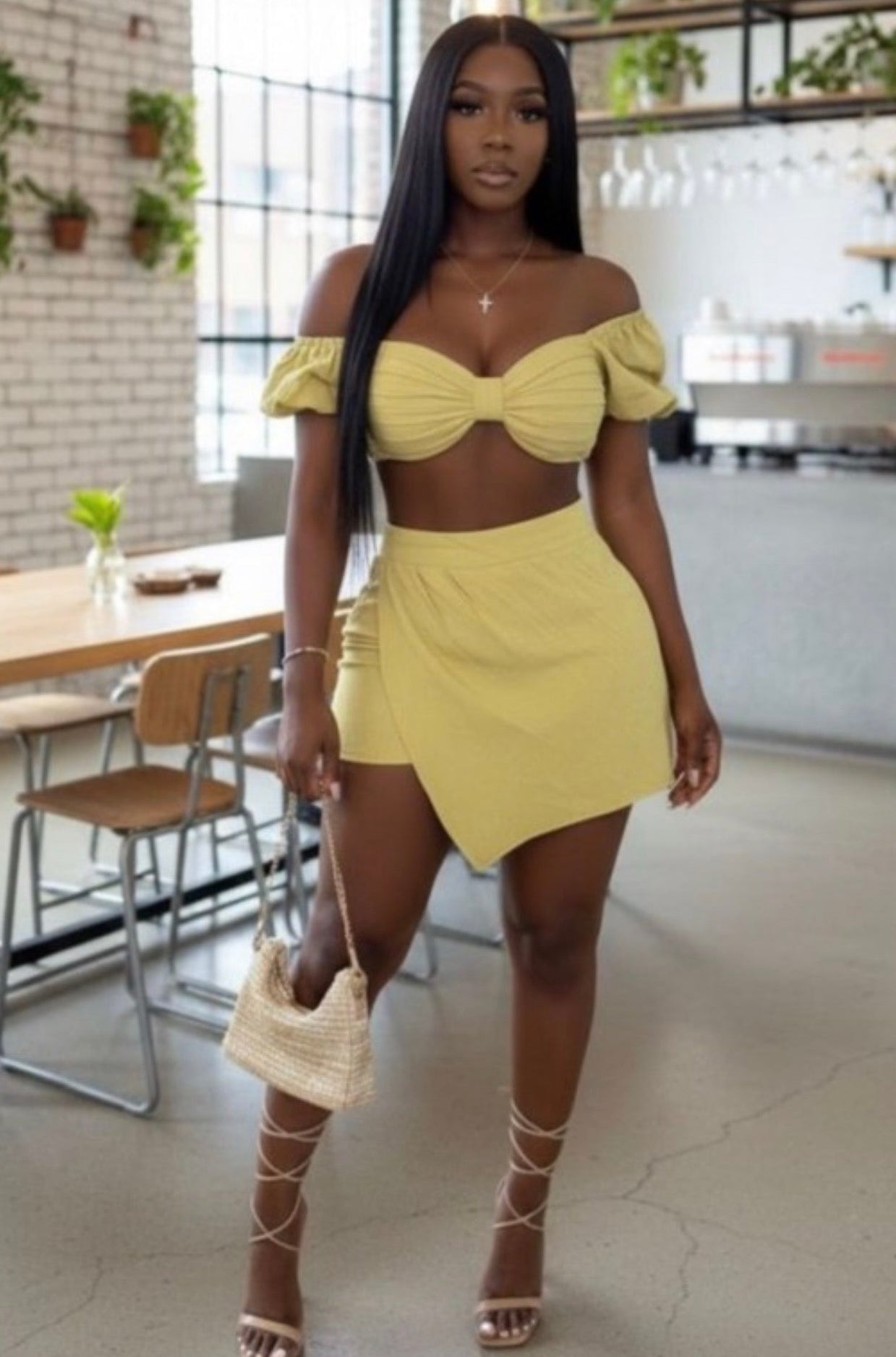 ✔ Puff sleeve crop top with front pleating detail