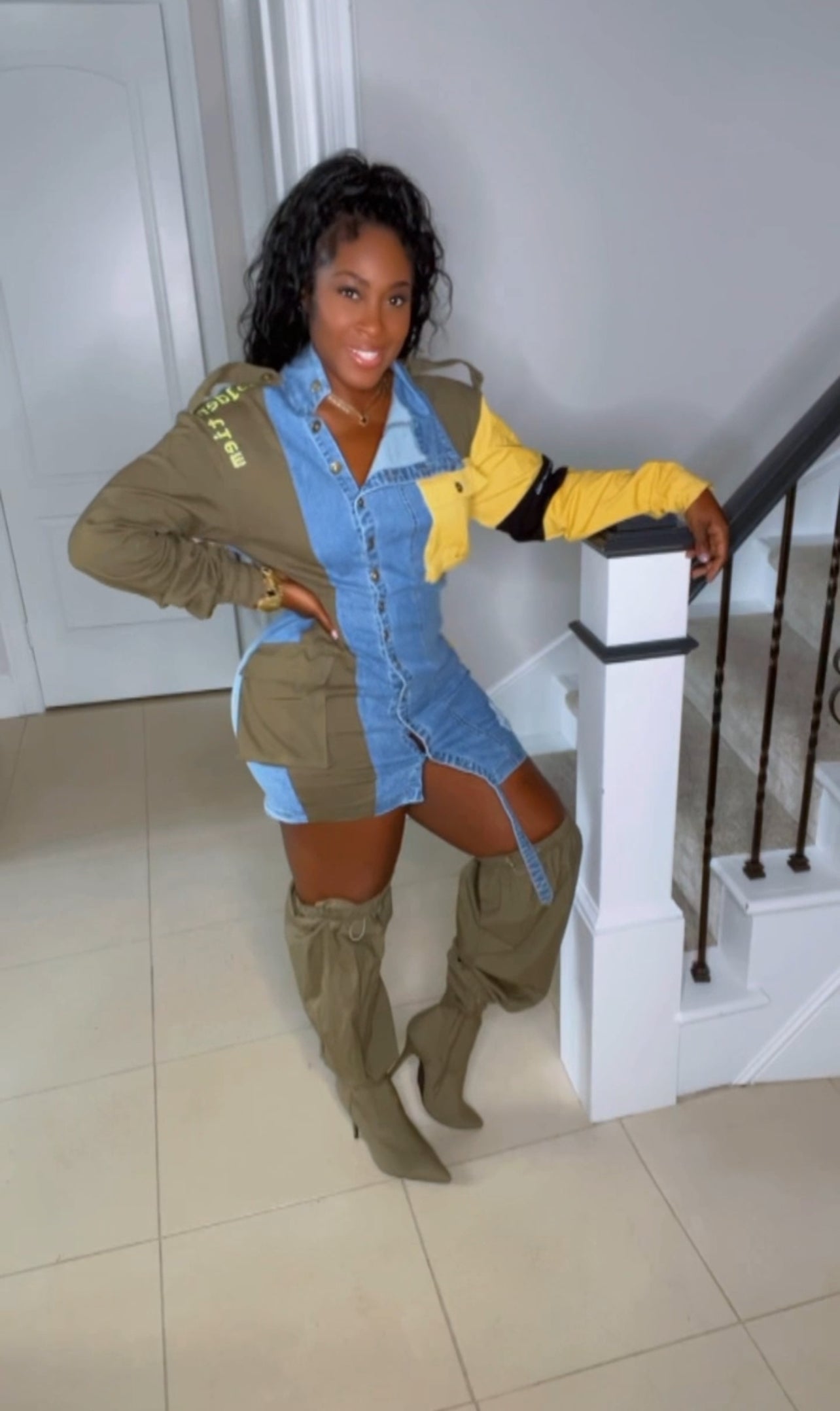 Front button long sleeve denim mini dress